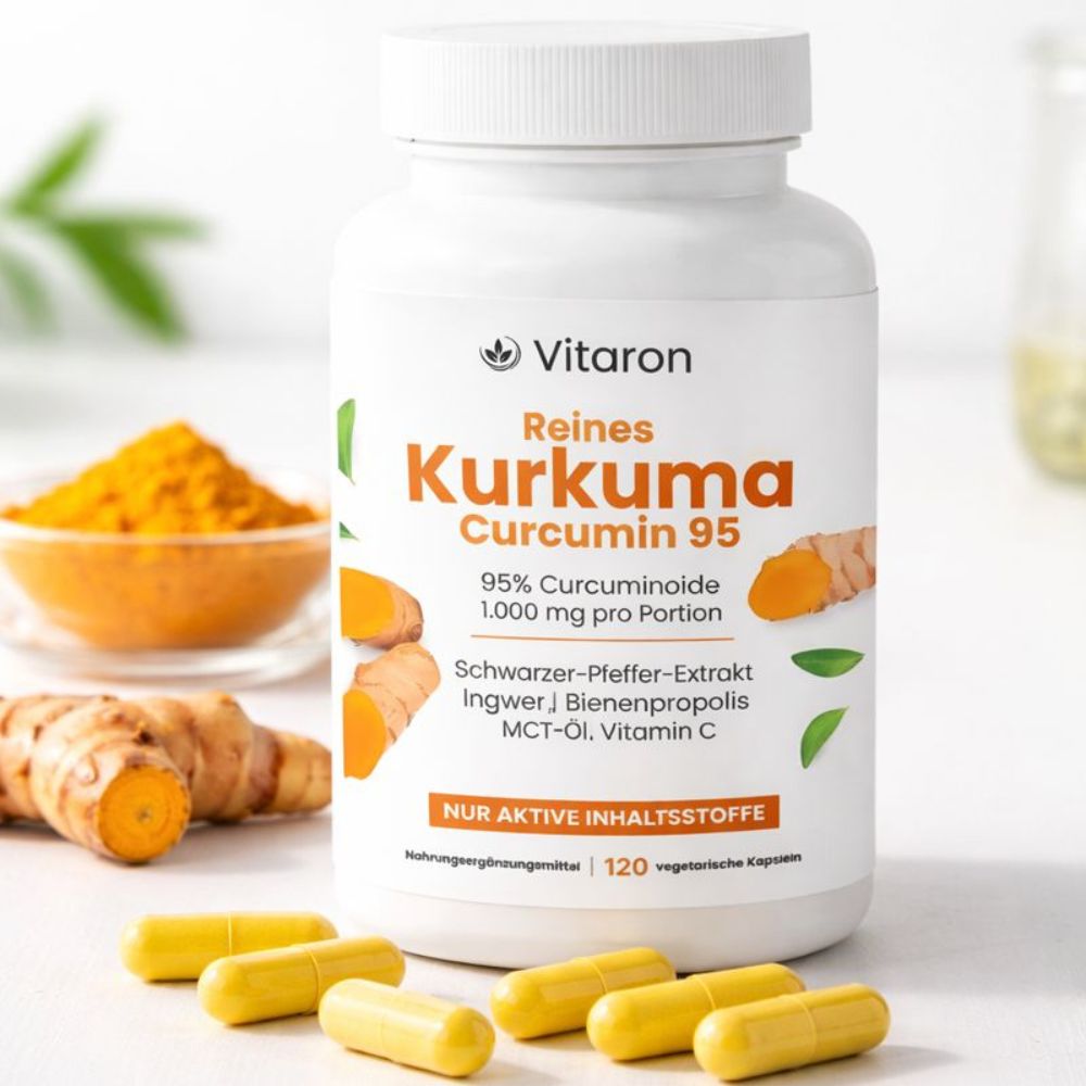 Wir setzen nicht auf minimale Mengen für das Etikett, sondern auf einen hochkonzentrierten Kurkuma-Extrakt, standardisiert auf 95% Curcuminoide – jene Pflanzenstoffe, die für die bekannten Eigenschaften von Kurkuma relevant sind. Die eingesetzte Dosierung orientiert sich an Mengen, wie sie in wissenschaftlichen Humanstudien im Zusammenhang mit Gelenken, Beweglichkeit und Entzündungsprozessen verwendet wurden.